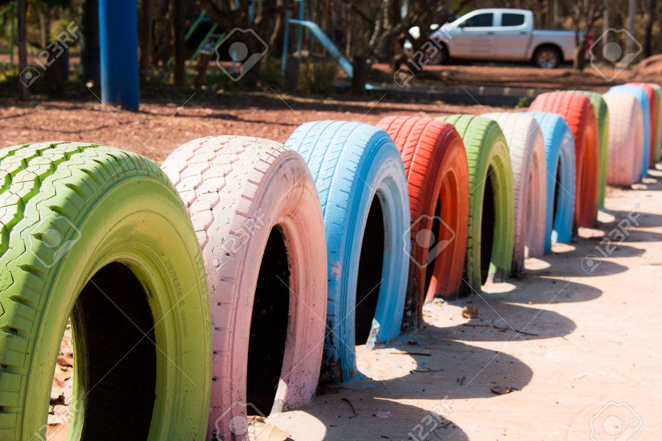 Use of old tires on children playground tires for kids